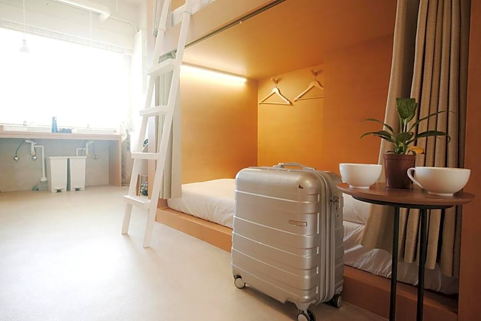 Single bed in a mixed dormitory room that accommodates 10 people. The room has a shower and a toilet for shared use. Also shared living room and kitchen equipped with a stovetop, a refrigerator, kitchenware and a microwave are available.